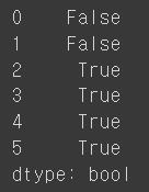 위 코드를 실행하면 중복된 행에 대해 True/False로 반환됩니다.False는 지금까지 중복되지 않은 행이라는 의미이고, True는 이전 행에서 중복된 행이 있다는 것을 의미합니다.
